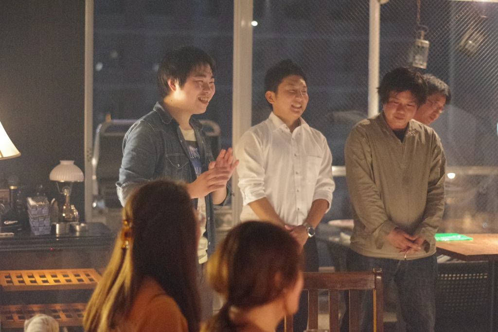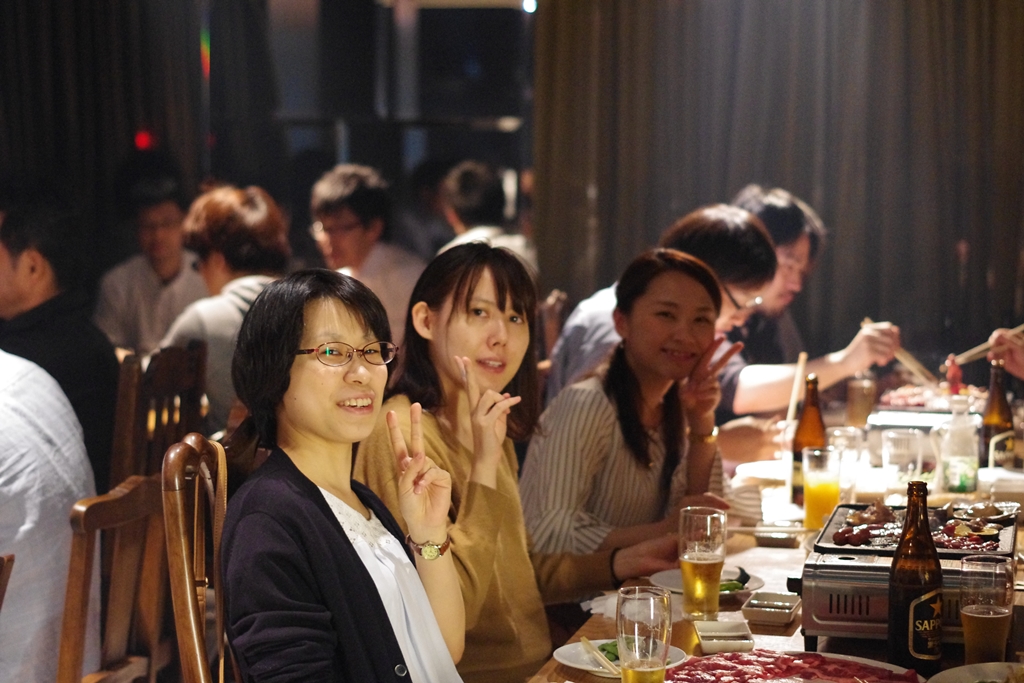 毎年恒例の新入生歓迎会です。お花見も兼ねているのですが…今年の桜は早かったですね。見事に散っていました。そして当日は雨で中止に!別日を設けて、パーティー会場を借りて焼き肉大会しました♪(2018年4月21日)